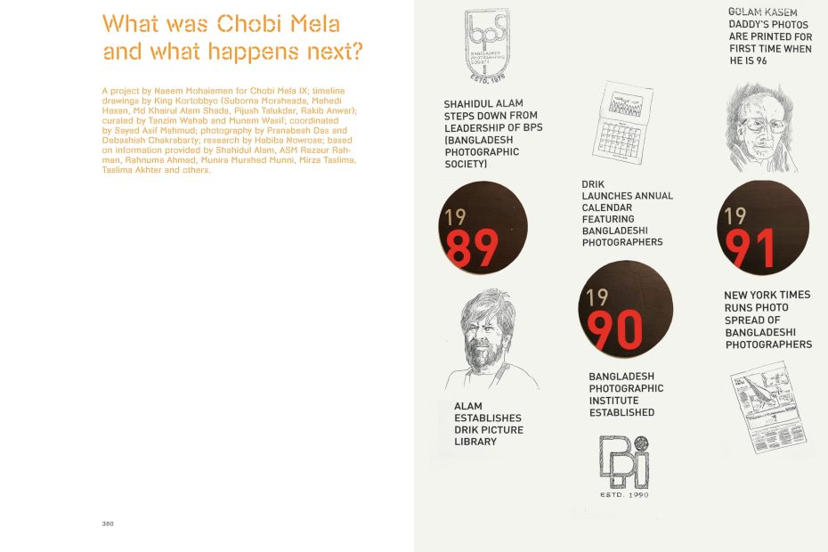 The 2019 edition of Chobi Mela (on the eve of pandemic) premiered a project by Naeem Mohaiemen, “What Was Chobi Mela And What Comes Next.” Borrowing from the title of Katherine Verdery’s book What Was Socialism And What Comes Next (1996), the project mapped out a 20 year history of three interlinked trends– photography in Bangladesh, the rise of arts organizations, and the evolution of technology.